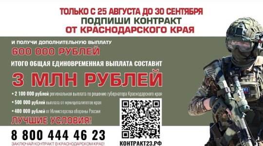 Краснодарский край предлагает ЛУЧШИЕ условия при заключении контракта на военную службу с Министерством обороны. До 30 сентября увеличена единовременная выплата подписавшим контракт до 3 МЛН РУБЛЕЙ. С ее учетом всего за первый год службы можно заработать 5,6 МЛН РУБЛЕЙ. Преимущества подписания контракта в Краснодарском крае: трансфер из любого региона России Оснащение современной экипировкой Профессиональная подготовка и […]