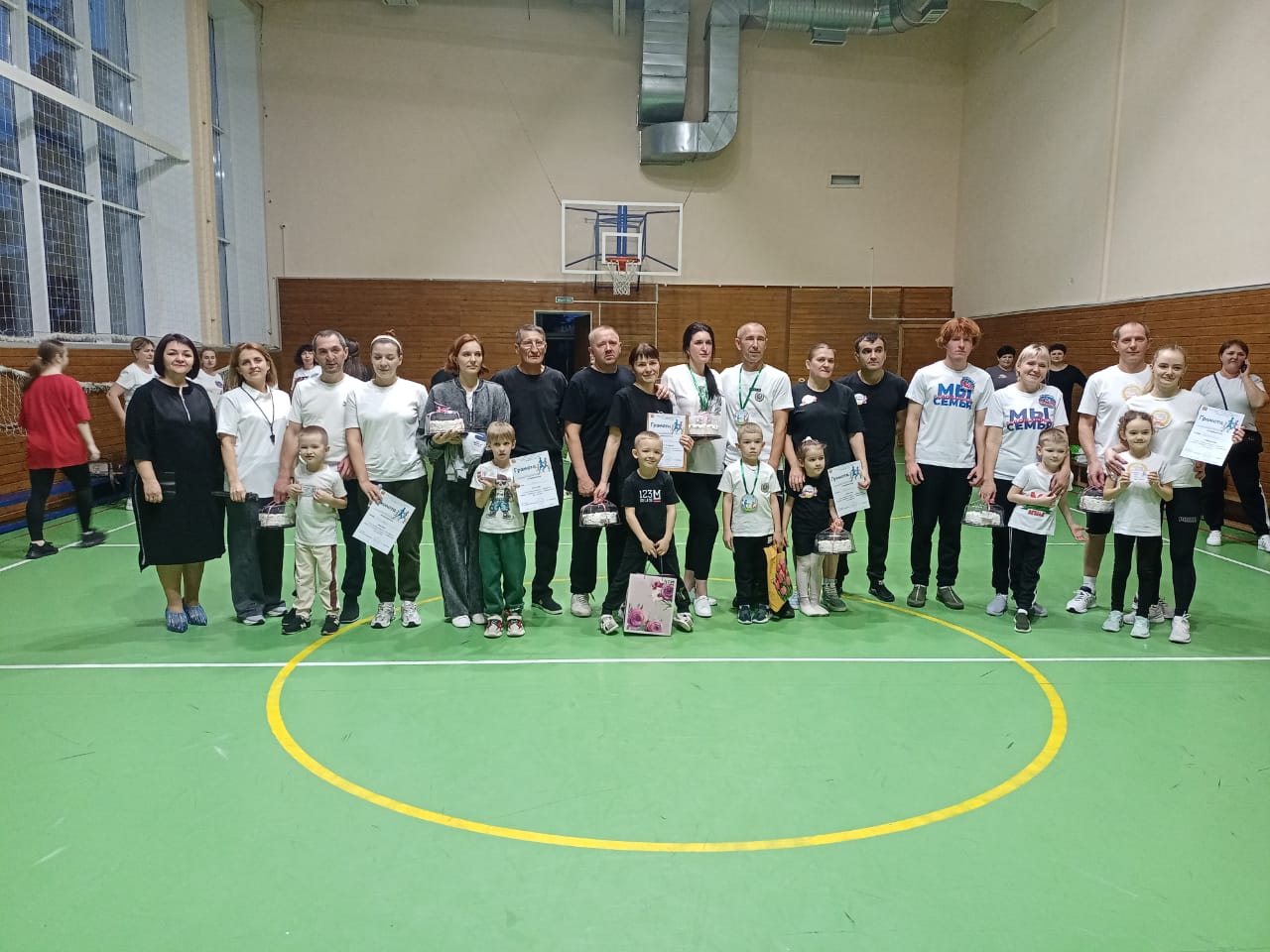Программа соревнований была насыщенной и интересной. Команды с удовольствием соревновались в эстафетах «Дружная семья», «Веселый баскетбол», «Ловкие папы» и других.