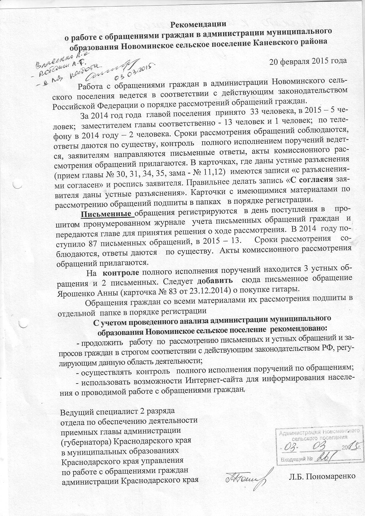 Право на внеочередной прием-ПОСТАНОВЛЕНИЕ- О внесении изменений в постановление администрации Новоминского сельского поселения Каневского района от 10.09.2014 № 108 "Об утверждении Порядка рассмотрения обращений граждан в администрации Новоминского сельского поселения"( в редакции № 64 от 28.04.2015) ( № 12 от 26.01.2016).